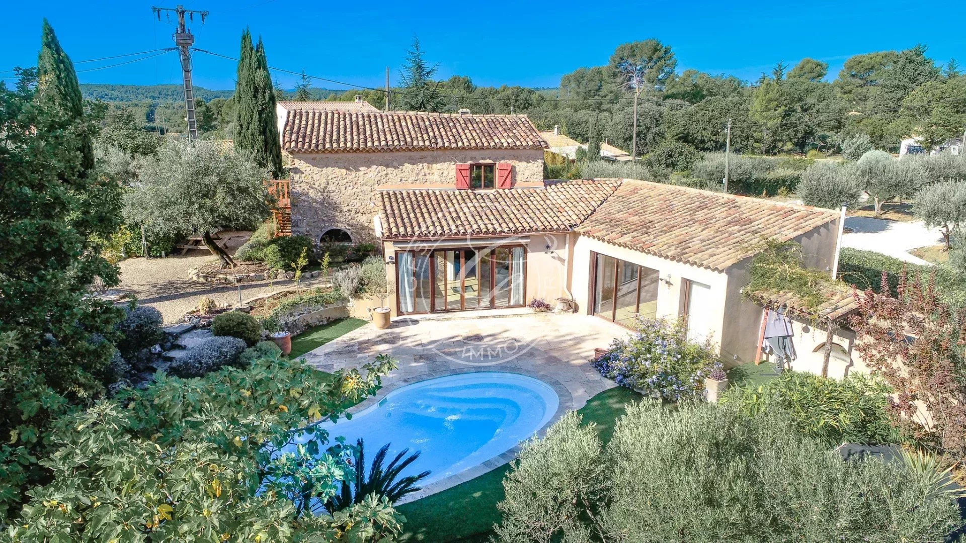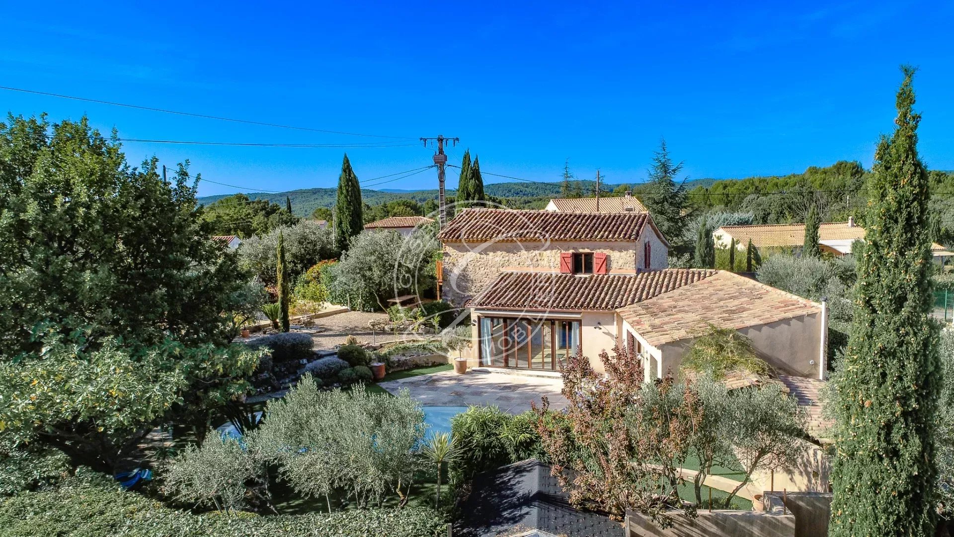 A VENDRE FLAYOSC - À seulement quelques minutes à pied du centre du village, cette magnifique bastide en pierre séduit par son charme et son caractère. Implantée sur un terrain plat et entièrement clos de 1 912 m², parfaitement paysager et entretenu avec soin, elle bénéficie d’un environnement calme et verdoyant, tout en étant à proximité immédiate des commodités.