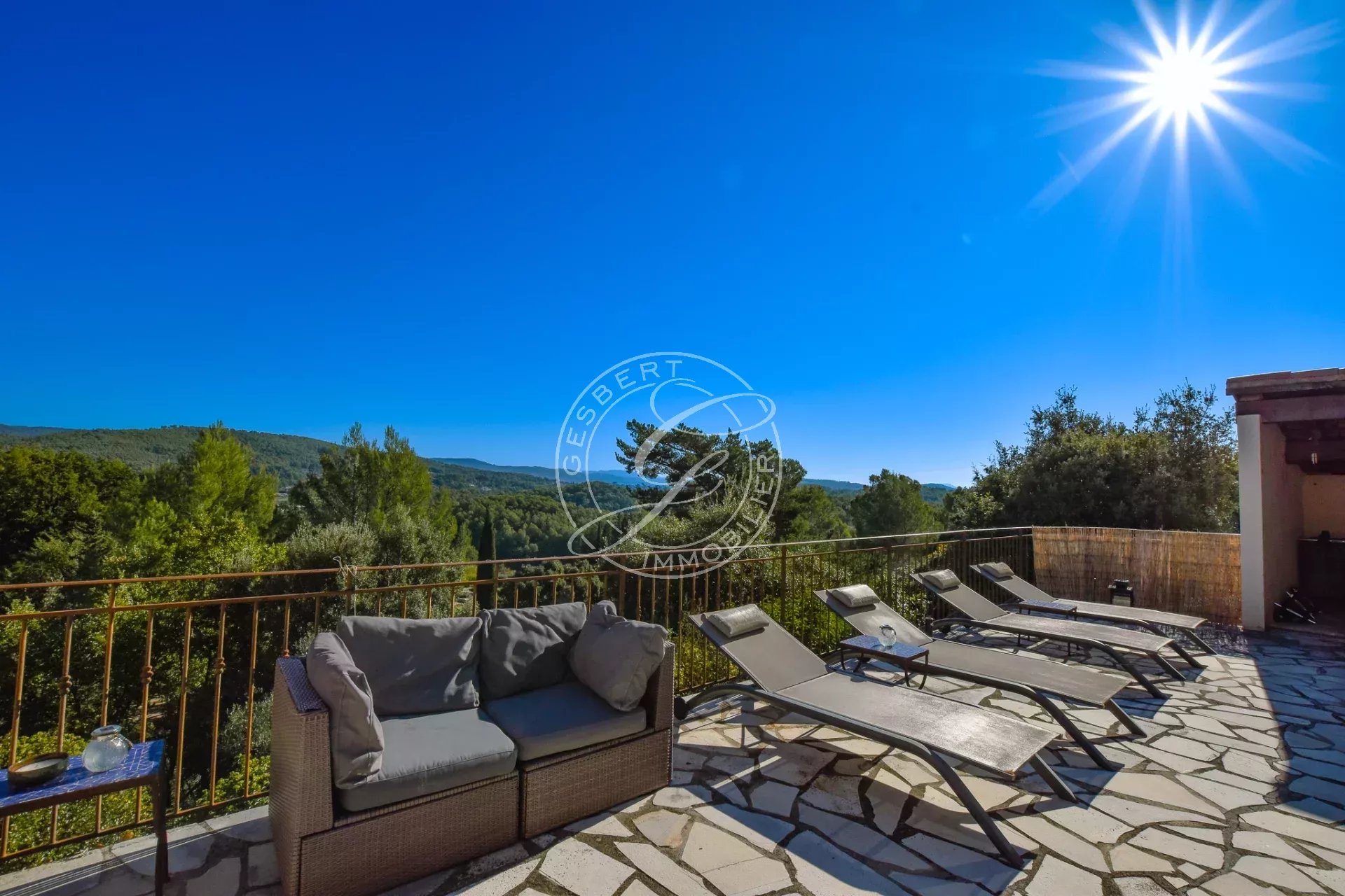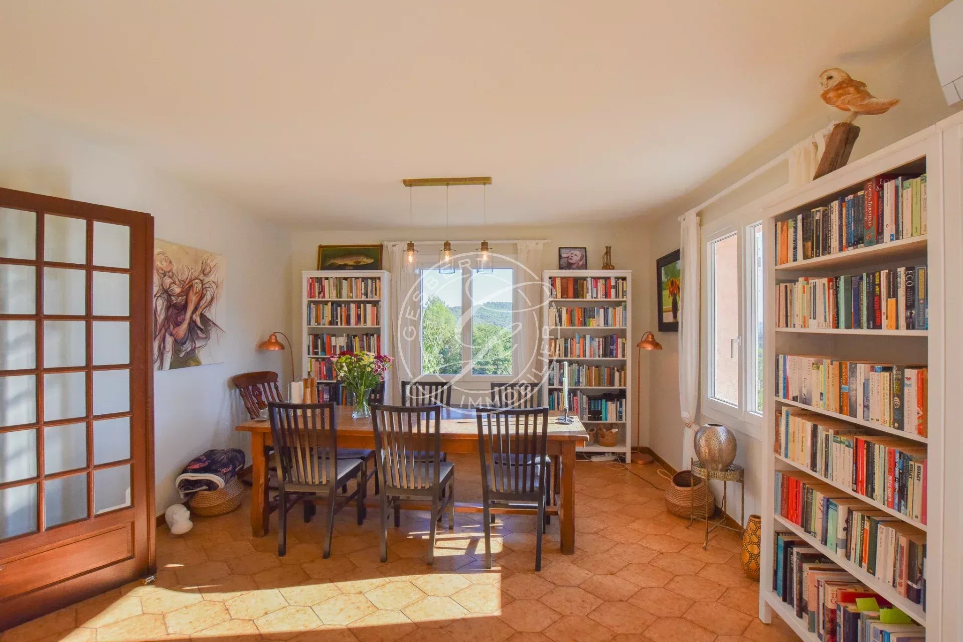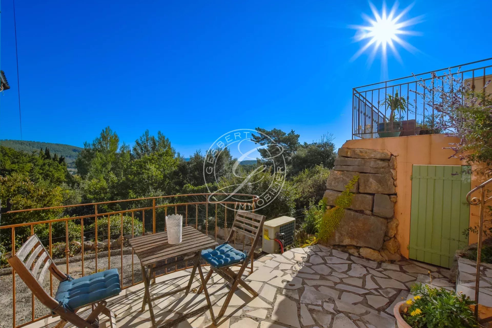 A VENDRE FLAYOSC EN EXCLUSIVITÉ - À quelques pas du centre du village, cette maison des années 80 avec vue panoramique, en position dominante, regarde Flayosc et la chaîne des Maures.