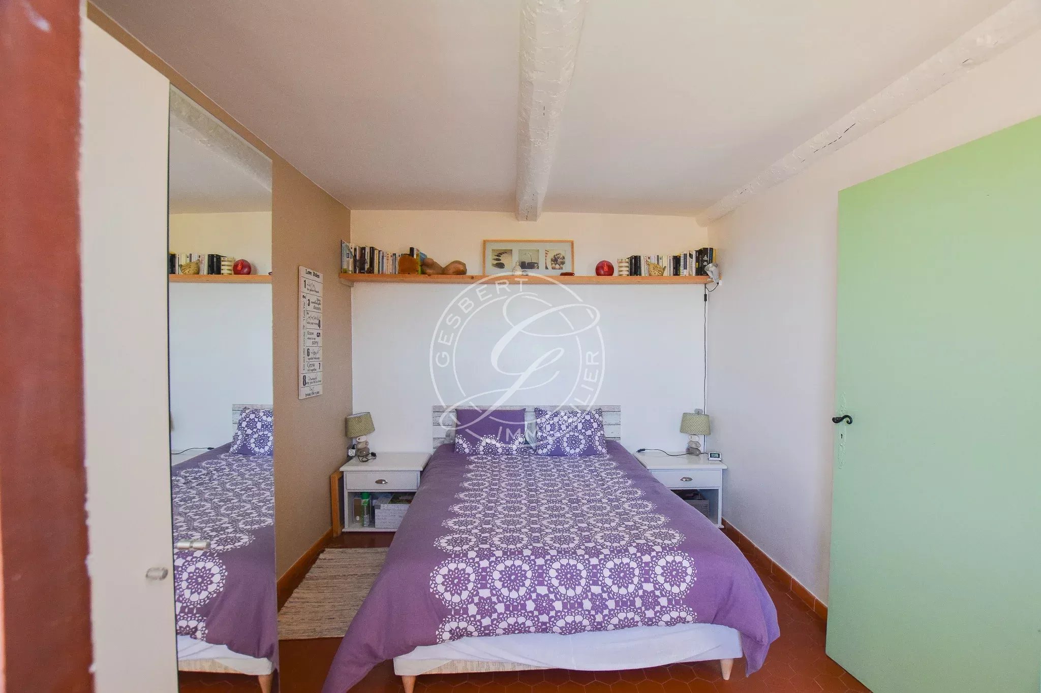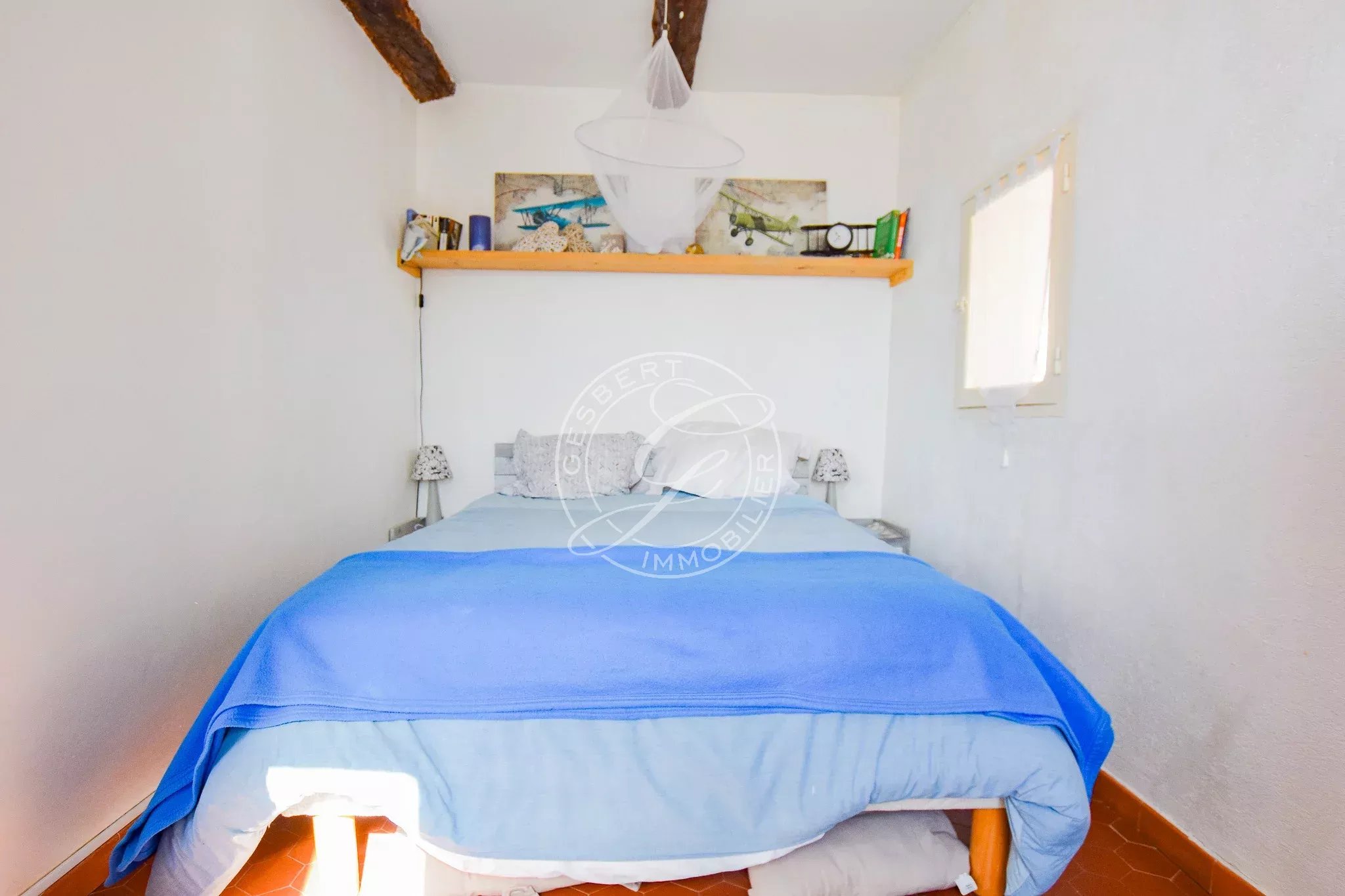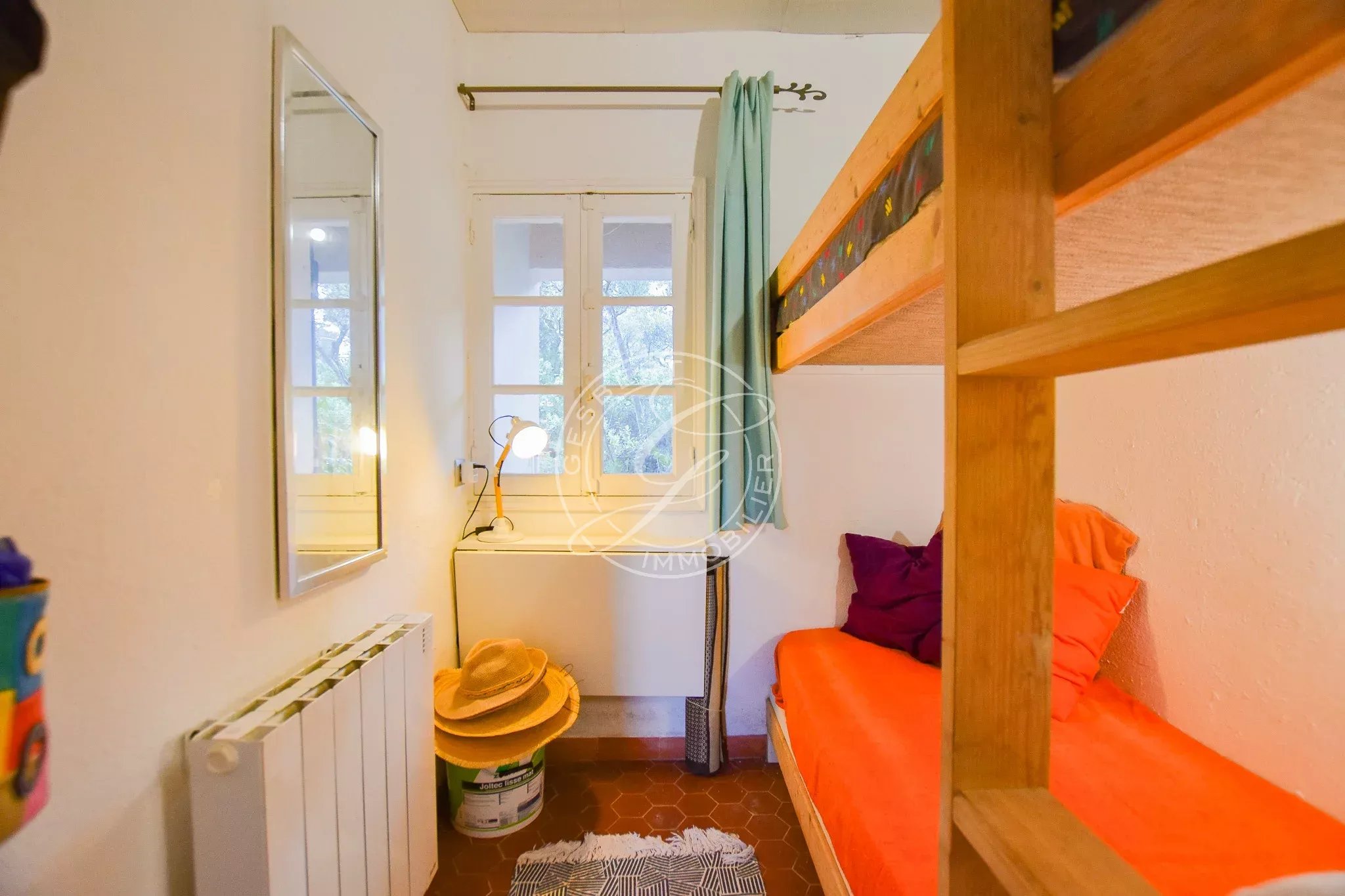 À l’étage, un palier dessert deux chambres.