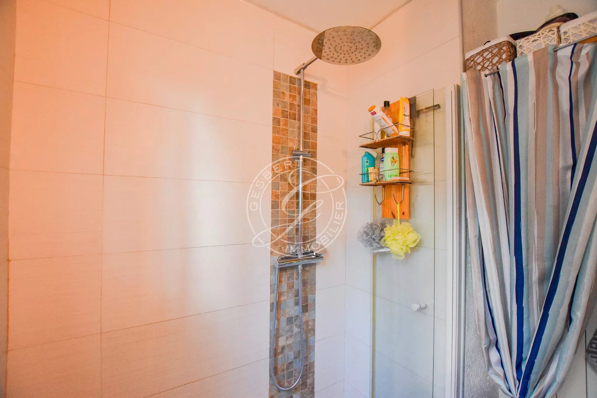 Il se compose au rez-de-chaussée d’une entrée desservant une cuisine, une pièce de rangement pouvant faire office de chambrette, une salle de douche ainsi qu’un WC indépendant.