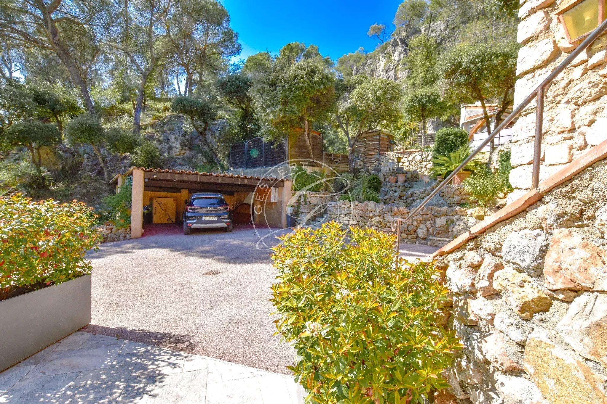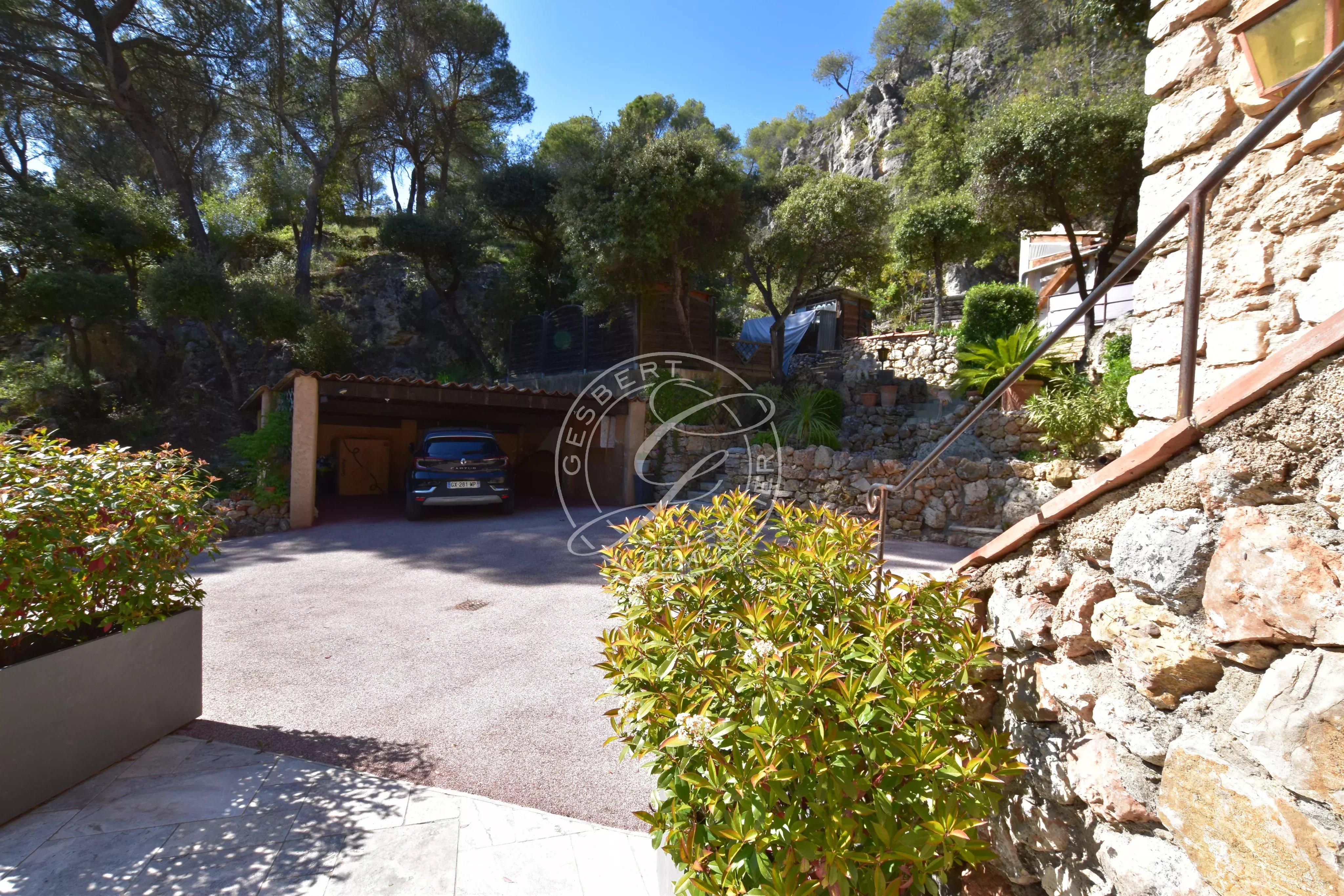 À l’extérieur, le terrain paysager, aménagé en restanques, révèle une multitude d’espaces intimistes dédiés à la détente.