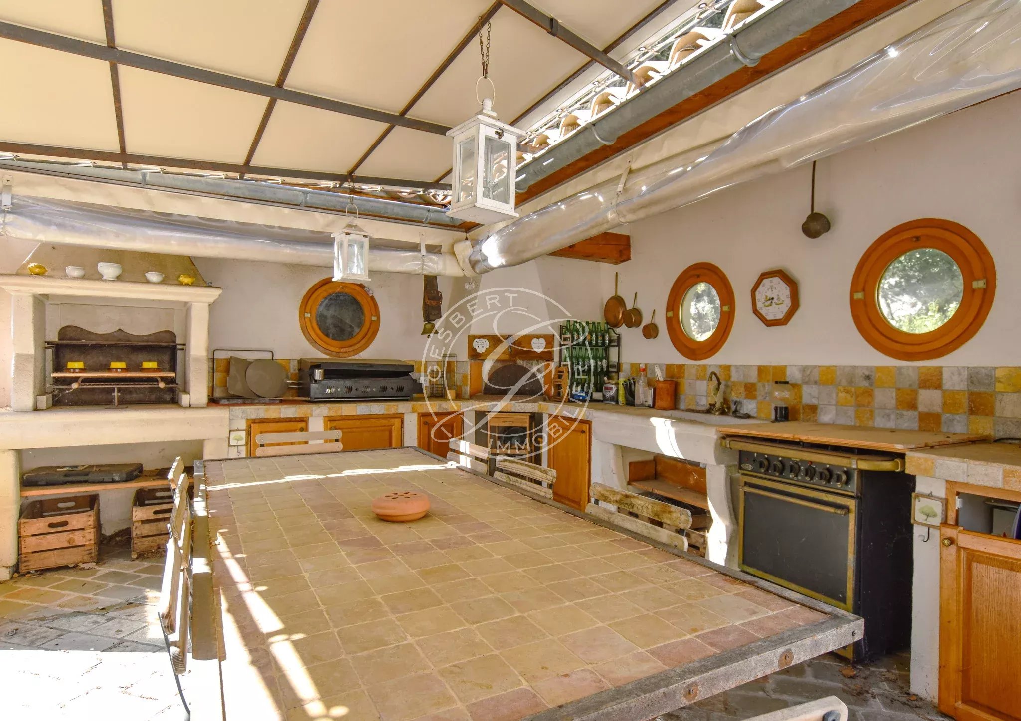 Côté prestations, la propriété dispose d’un portail électrique avec visiophone, d’une climatisation réversible dans l’espace principal et bénéficie d’un environnement particulièrement calme, à l’abri de toute nuisance.