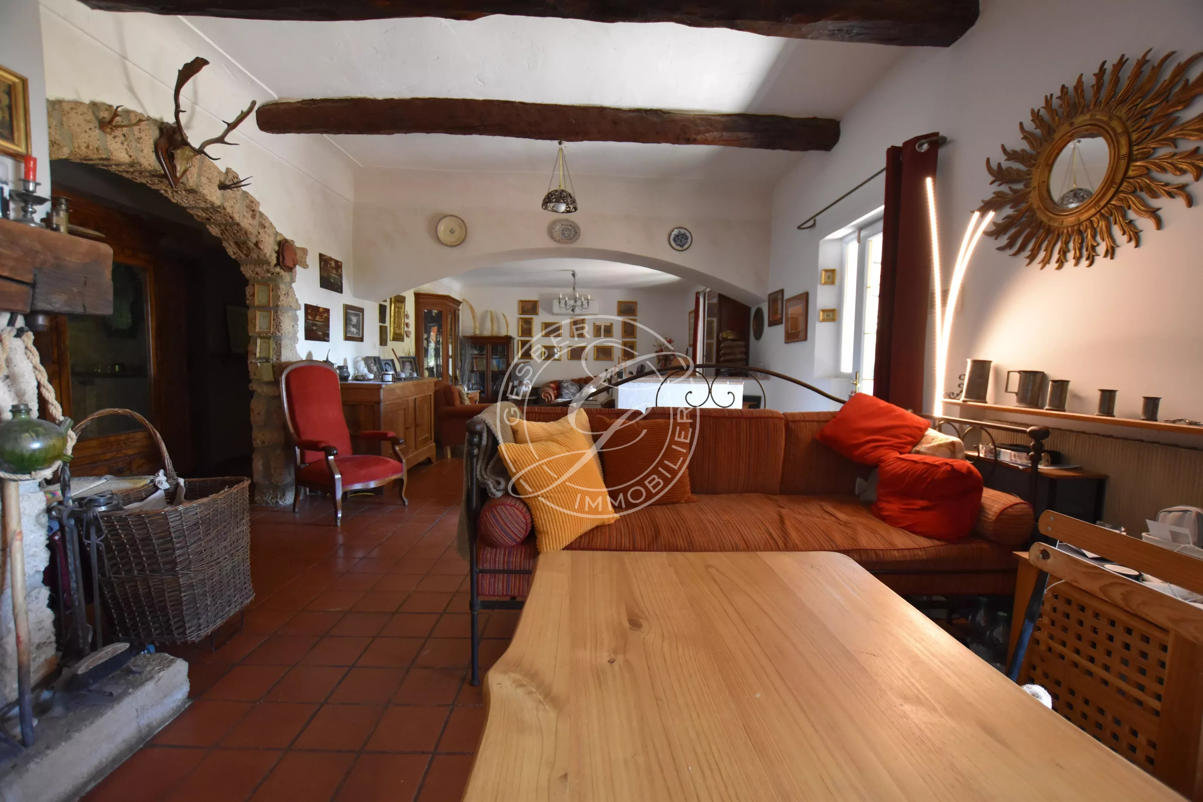 Nichée dans un écrin de verdure et harmonieusement intégrée à la roche, cette maison de caractère en pierre développe un charme singulier et une atmosphère unique. Édifiée sur deux niveaux, elle offre une organisation fluide et des volumes pensés pour conjuguer confort et élégance.